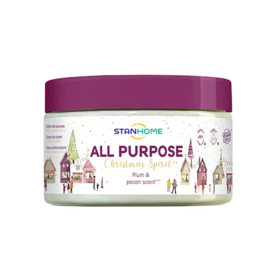 La ALL PURPOSE CHRISTMAS SPIRIT de Stanhome es una crema rica y nutritiva en edición limitada, diseñada para nutrir y proteger la piel durante la temporada festiva. Con una fragancia envolvente de ciruela y nuez de pecán, esta crema proporciona una experiencia sensorial única mientras cuida tu piel.